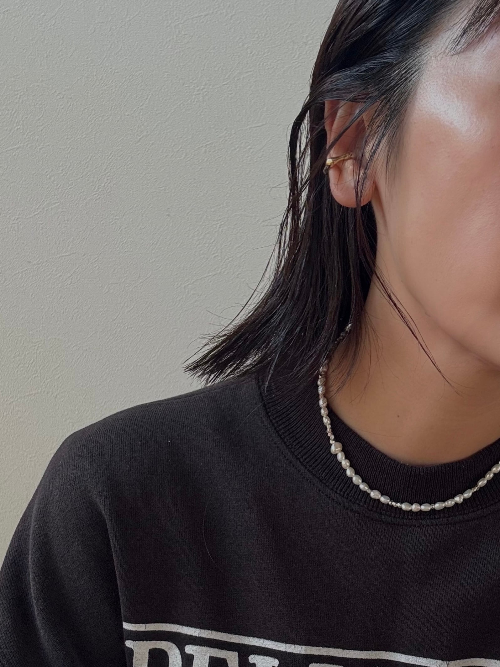淡水パールに落ち着いた輝きを放つカレンシルバーをアクセントに散りばめた一本。