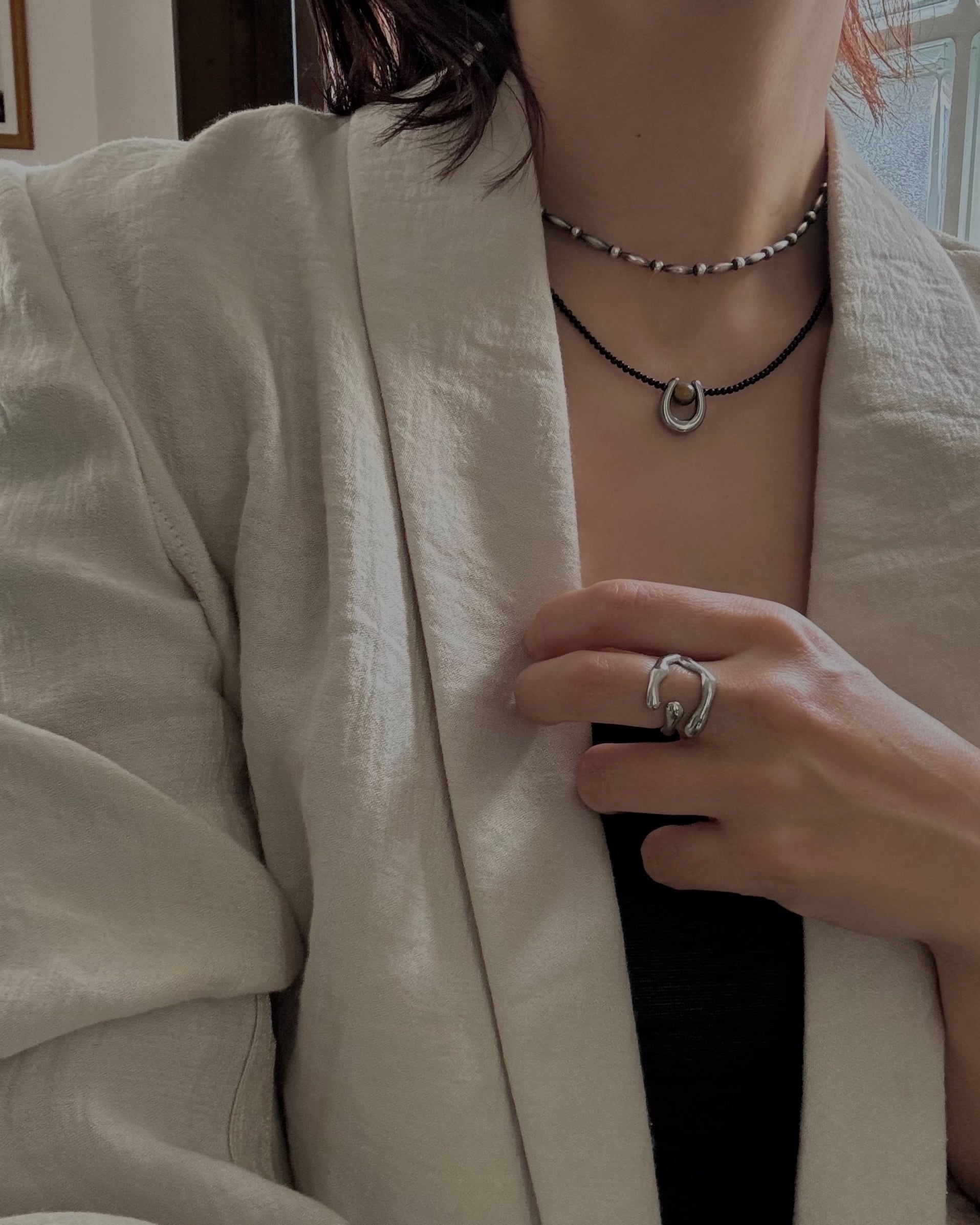 漆黒のスピネルをあわせて、甘さを削ぎ落とし、意思のある一本に仕上げました。