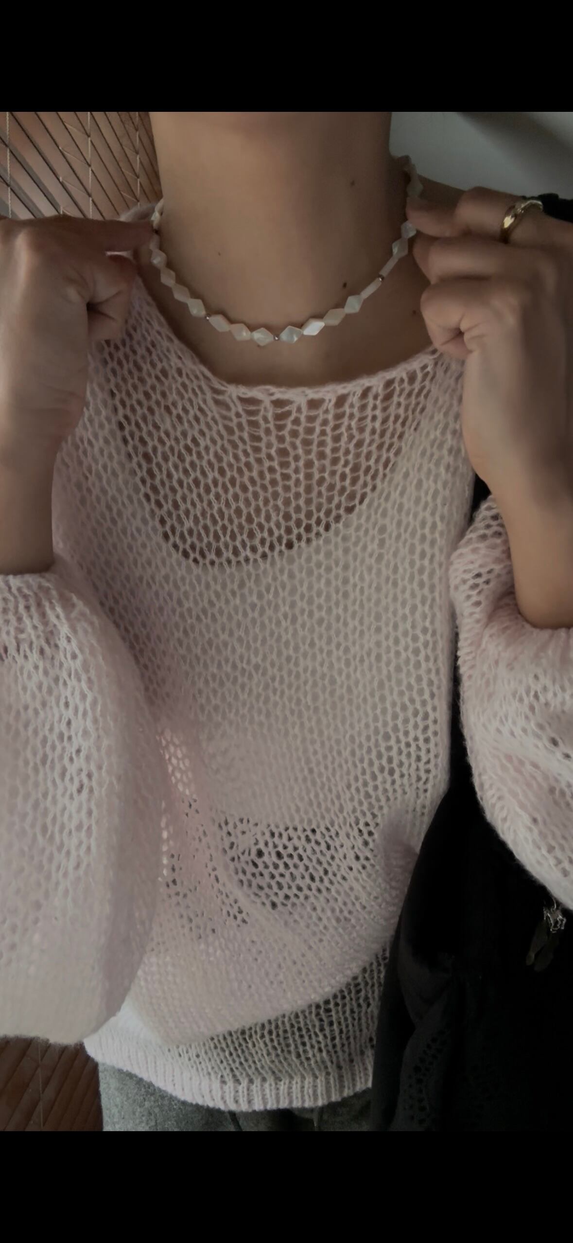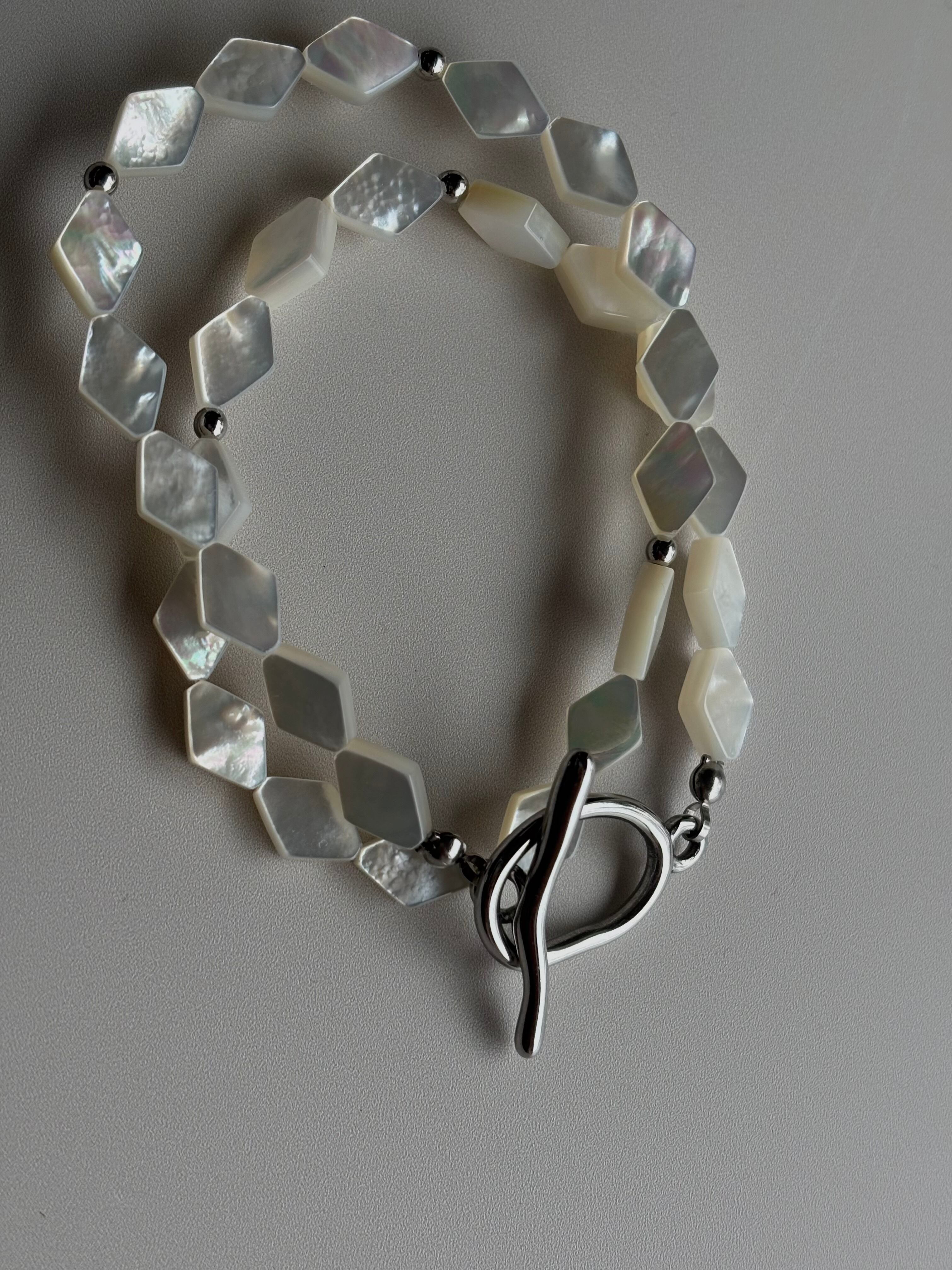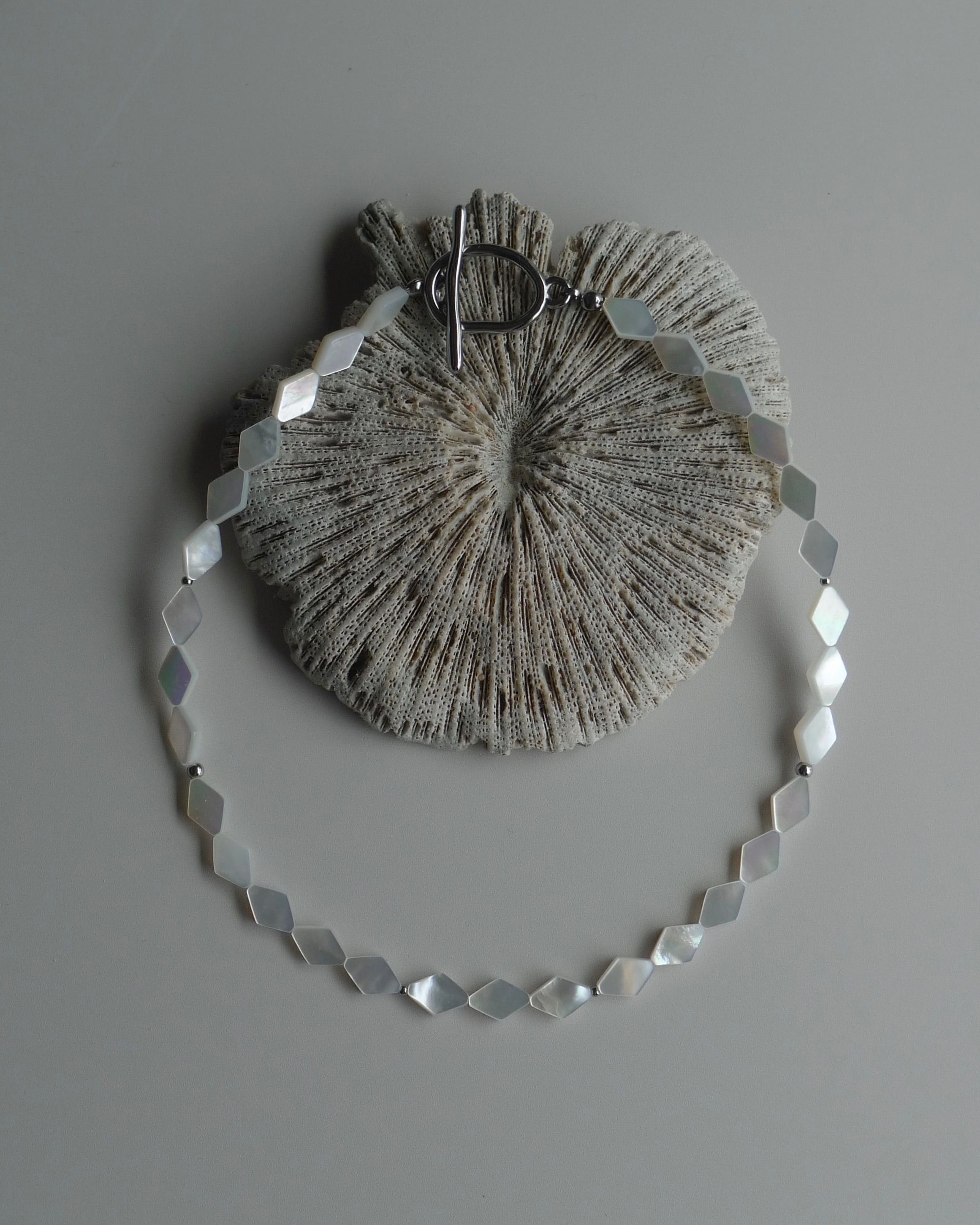 主張しすぎないのに印象に残る、このダイヤ型ホワイトシェルの連なり。