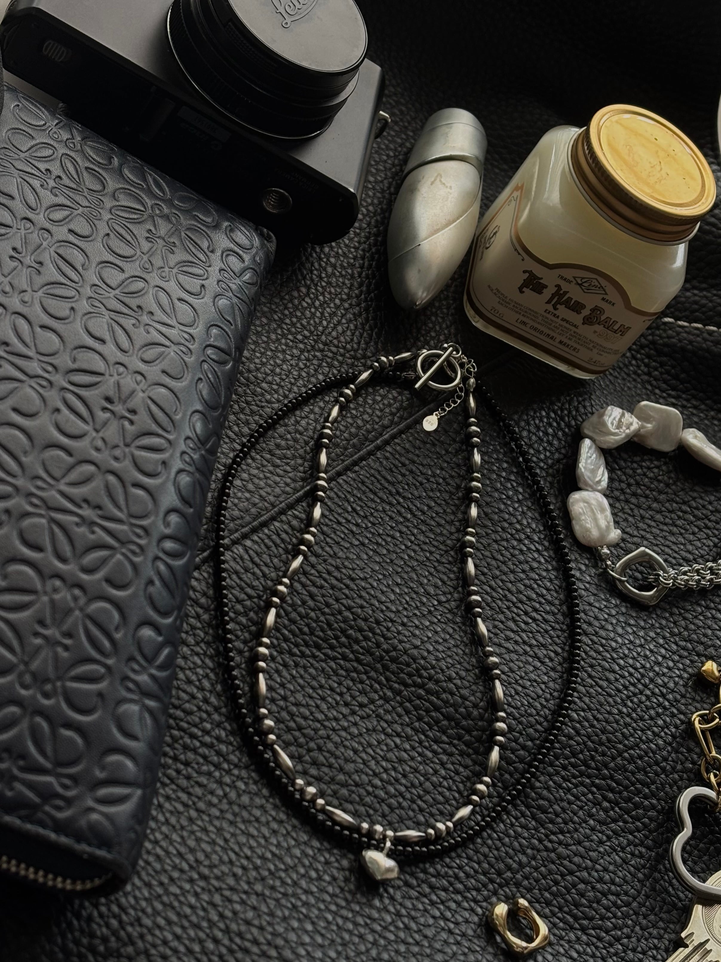 カレンシルバーハート×ブラックスピネルのネックレス。